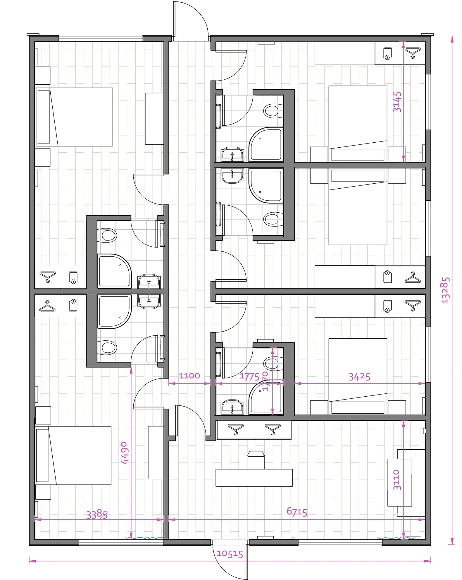 По вашему желанию размер модуля может меняться за счет уменьшения или увеличения его ширины. Минимальная ширина модуля 2м 45см, что соответствует транспортным габаритам. Данное строение является габаритным грузом и может быть доставлен в любую точку России по вашему желанию. Площадь такого мини-отеля составит 100 м2. Стандартный модуль имеет ширину 3м 40см и его площадь составляет 130,5 м2. Перевозка такого дома возможна на низкорамном прицепе, так как груз является негабаритным. По вашему желанию ширина модуля может быть увеличена до 4м 20см. Площадь данного мини-отеля составит 165 м2.