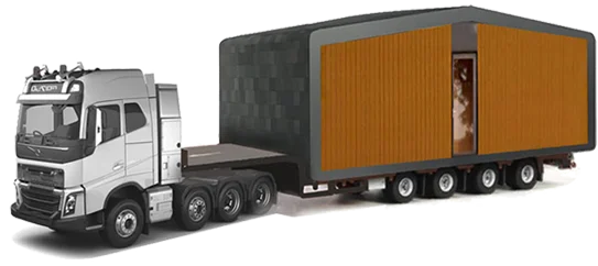 По вашему желанию размер дома может меняться за счет уменьшения или увеличения ширины дома. Минимальная ширина модуля 2м 45см, что соответствует транспортным габаритам. Данный дом является габаритным грузом и может быть доставлен в любую точку России по вашему желанию. Площадь такого дома составит 75 м2. Стандартный модуль имеет ширину 3м 40см и его площадь составляет 93,5 м2. Перевозка такого дома возможна на низкорамном прицепе, так как груз является негабаритным. По вашему желанию ширина модуля может быть увеличена до 4м 20см. Площадь данного дома составит 120 м2.